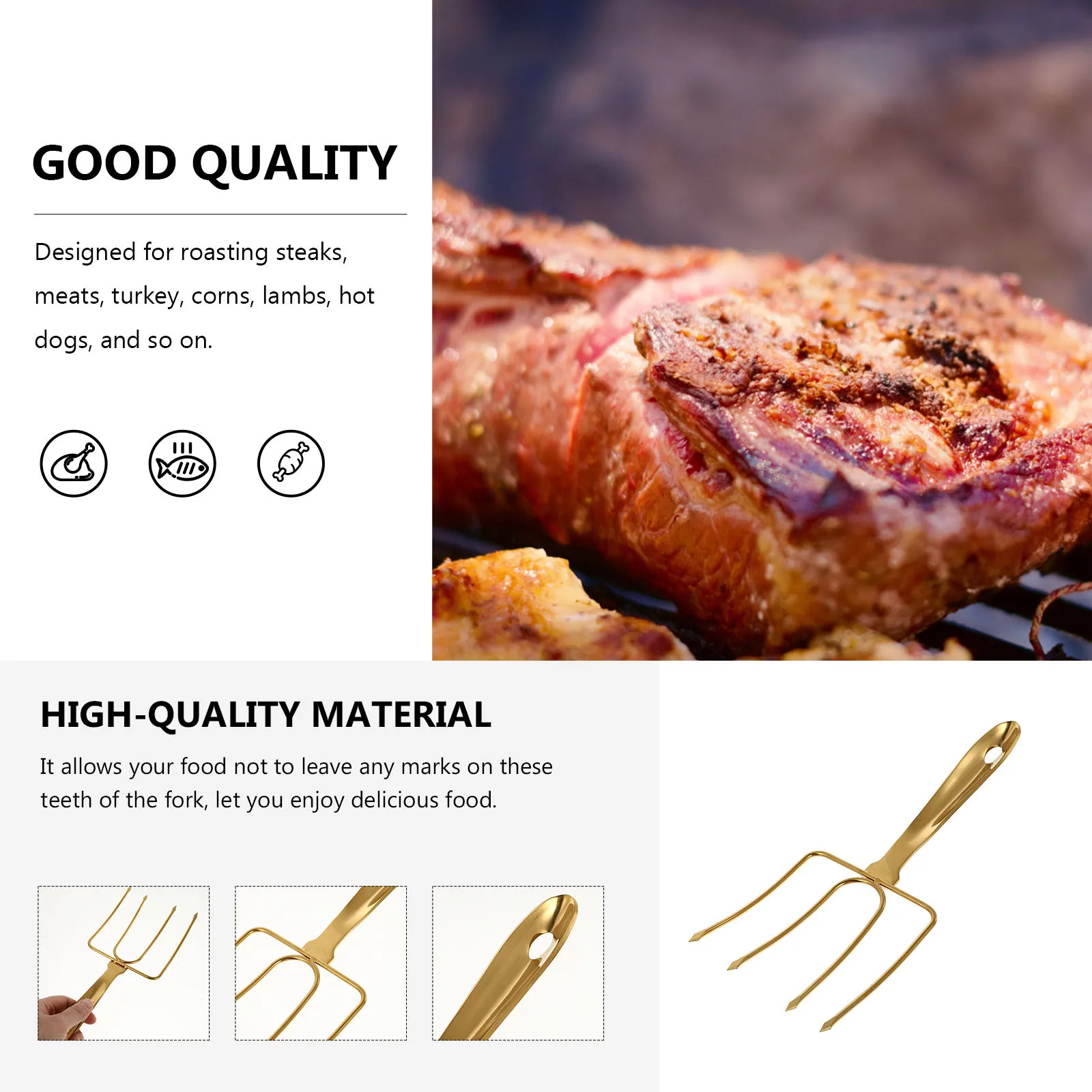 1pc Stainless Steel Bbq Fork Long Handle Ergonomic Grip Roasting Skewer For Turkey Chicken Lamb Steak Outdoor Grilling Camping