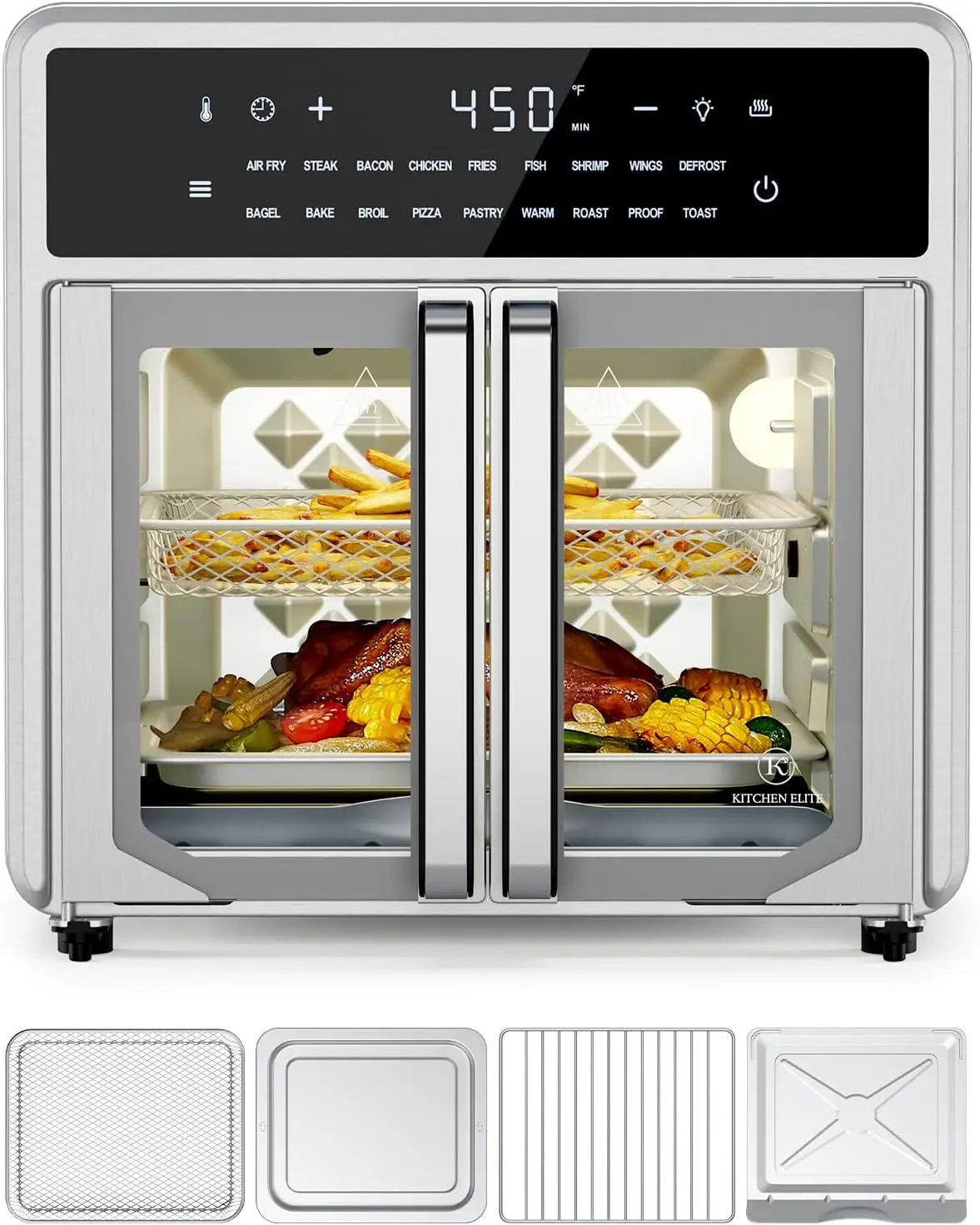 Air Fryer Toaster Oven Combo,15.8Qt Small Counter top French Door Oven