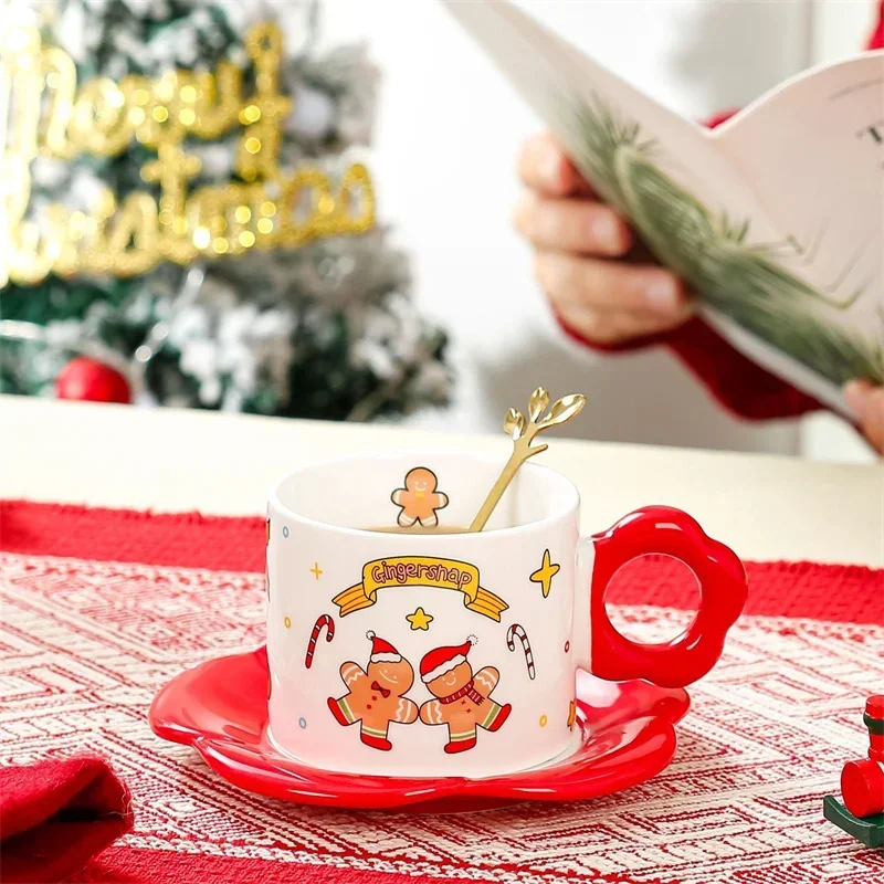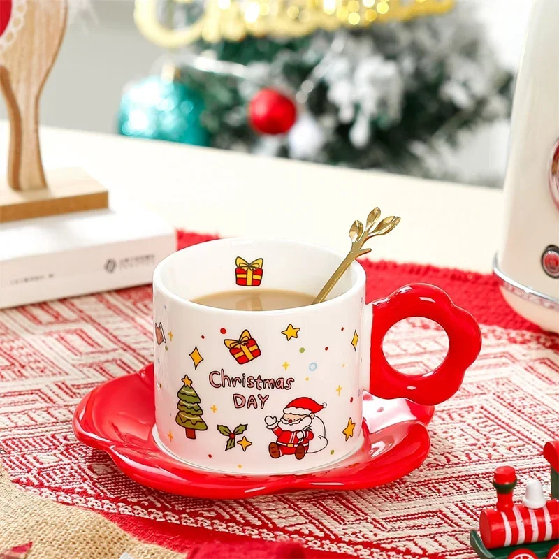 Ceramic Cup Saucer Set with Spoon Christmas Themed Cartoon Coffee Cup Water Cup Drink Cup Milk Cup Gift Present with Spoon Mug