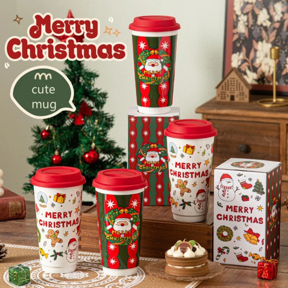 Type: Christmas Ceramic Coffee Mugs with Silicone Lid