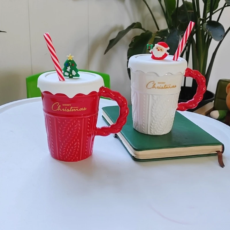 Christmas Themed Beverage Cup, Seasonal Ceramic Mugs, Christmas Hot Beverage Cup for Coffee & Milk